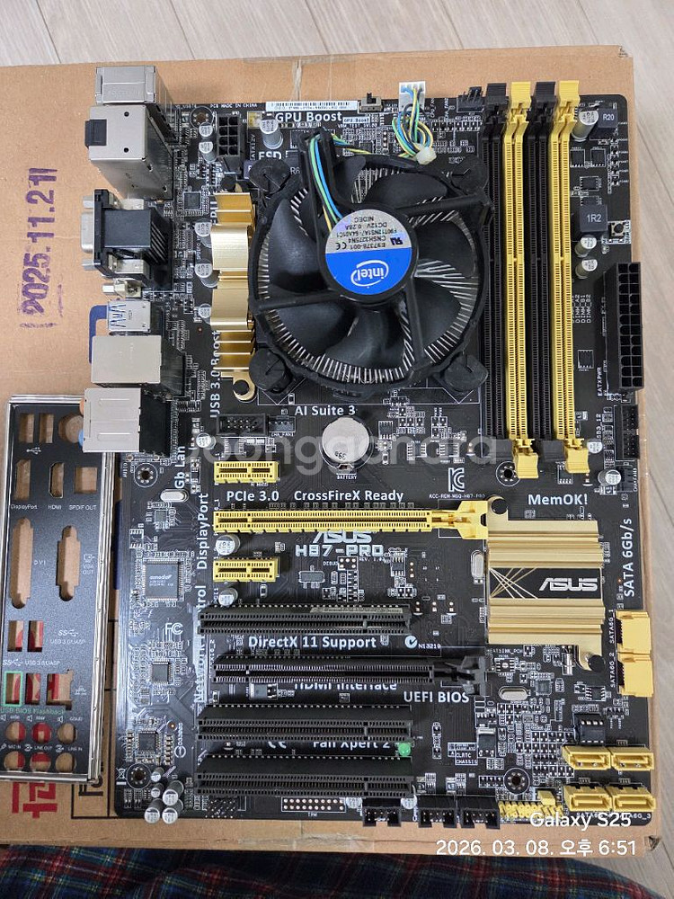 i5 4670 + Asus h87-pro 보드셋 판매합니다 구동 테스트 완료하였습니다. 취미로 조립하는게 좋아 보관하던 제품들이구요 이사로 인해 정리합니다. 직거래는 경기광주 초월역 또는 성남 단대오거리역에서 합니다. 택배거래시 택배비 3000원 추가됩니다. (파손면책 동의시 택배 가능)