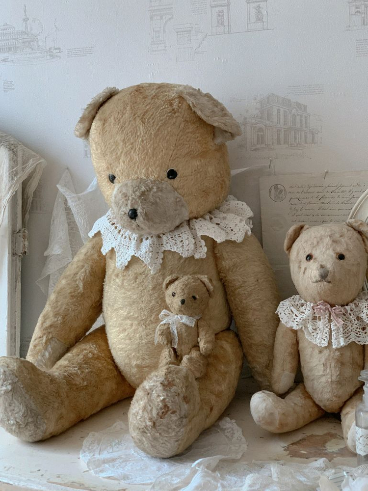징짜 큰 앤틱곰. 프랑스에서 받았구요. 뚱뚱하고 엄청 구엽게생겼어요. 상태도 좋은편이구요. 충동적으로 대왕 앤틱곰만 3마리를 사서 한마리 보내요~ 의자에 앉혀도 테이블위로 얼굴 올라와서 너무 이쁘고. 특히 이렇게 상태좋고 귀요미 얼굴은 귀해요. 제 앤틱곰들 미모는 보장해요~ 케이프포함입니다.겨울목도리도 드려요. 6.7번 사진은 제 소장곰인데 사이즈가 같고 얼굴도 비슷해요 .크기보시라구요~ 앉은키 50센치정도. 이거 한마리면 존재감!!최고. 앤틱곰은 싸면 싼 이유가 있어요~~~ 가격 값 합니다!