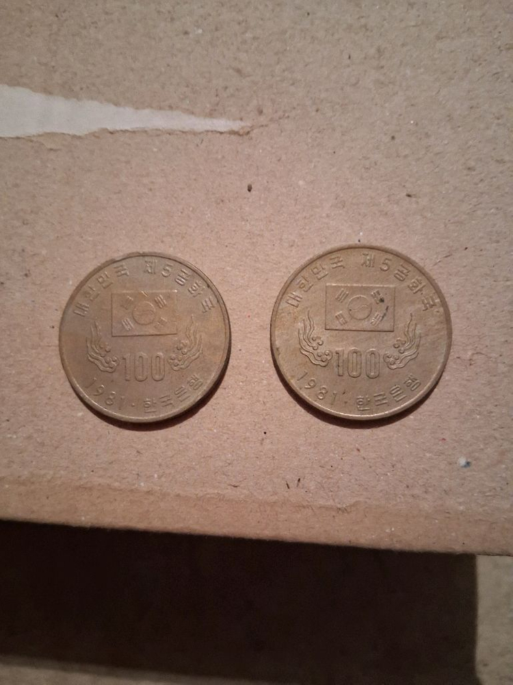 1981년 발행된 100원 기념주화 2개입니다. 사용감은 있지만 상태 양호하고 컬렉션용으로 좋을 것 같아요. 빈티지 동전 수집하시는 분께 추천드려요!