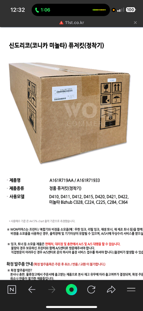 코니카 미놀타 정착기 새제품으로 판매합니다. 박스 포장 상태 그대로 보관되어 있어요. 정품 부품번호 A161R71933 제품입니다. 신도/미놀타 수입정품 정착기 판매합니다 사용자의 부주의로 인한 교환/환불은 어렵습니다 구매 전 모델명을 꼭!!!! 확인해주세요 미개봉 새상품 입니다