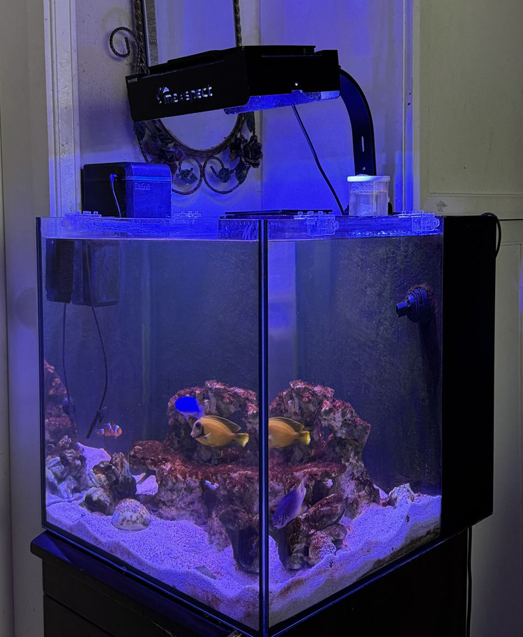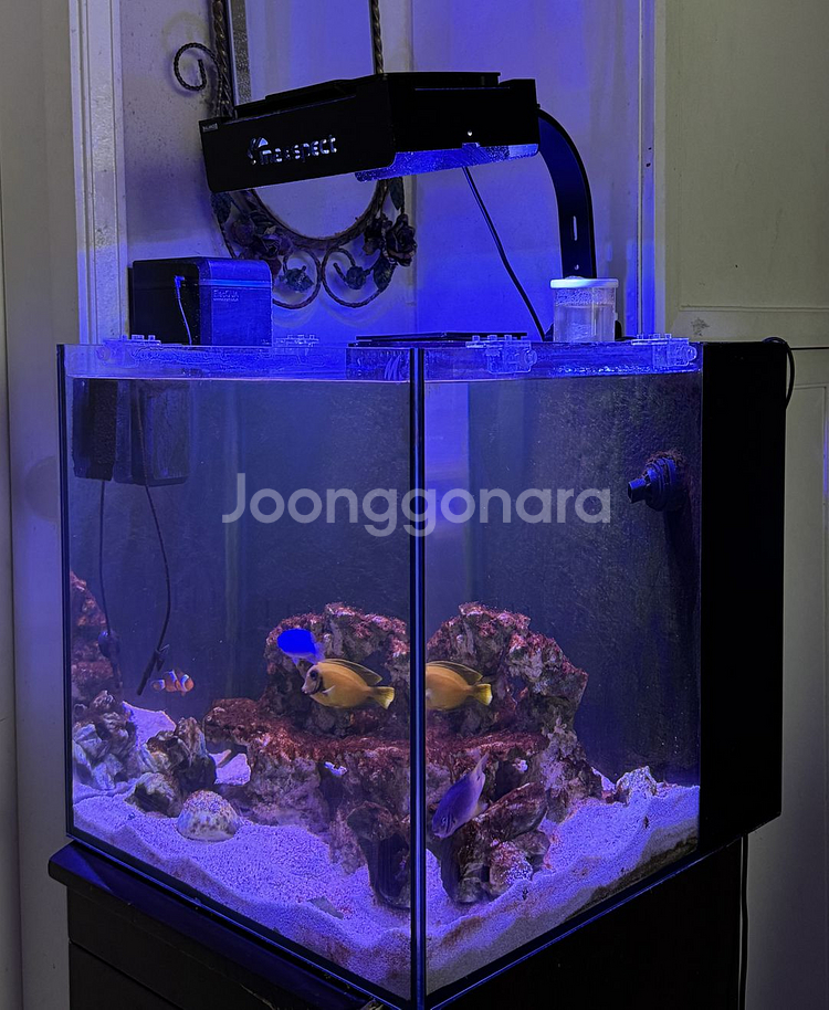 아버지께서 관리하고 키우시던 해수어항입니다. 개인적인 사정으로 처분하게 되었습니다. 요근래 관리가 이전보다 소홀해진 상황이라 쾌적한 상태는 아니지만 양해부탁드립니다. 전체적으로 다소 생활감이 있지만, 충분히 새로 관리하고 사용하시기에는 무리없는 상태라고 봅니다. 어항의 상태를 반영한 금액을 잡았고, 관심있으신 분 연락부탁드립니다! 아래 품목들을 한꺼번에 가져가실수 있는 분이 연락주시면 감사드리겠습니다! 지역은 중구 약수동입니다! 1. 마린코스트 - OZ45수조 (45x50x45) : 22년 12월 구입 / 286,000원 2. 조명 - 맥스팩트 MJ-L165 : 22년 12월 구입 / 271,000원 3. 스키머 - 마린코스미니 NF-1 : 22년 12월 구입 / 165,000원 4. 리턴모터 / 22년 12월 구입 / 49,960원 5. 시즈 항온기 - seize-EQ103W : 23년 3월 구입 / 360,000원 6. 염도계 - 한나 해수용 염도계 HI98319 : 23년 3월 구입 / 125,000원 7. 생물 - 니모 1, 담셀류 2, 옐로우탱 1 ※중고로 구입한 제품은 없고, 전부 새상품이었습니다! ※일괄판매합니다! (성형락 제외)