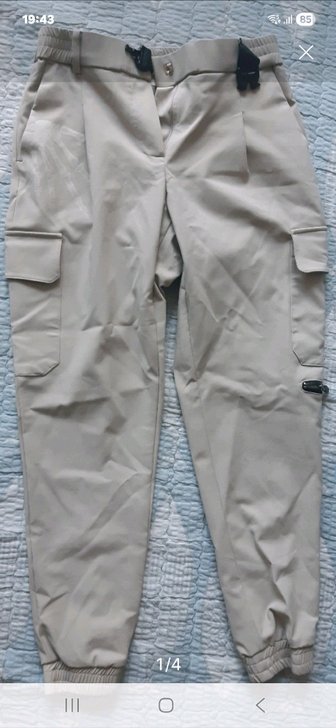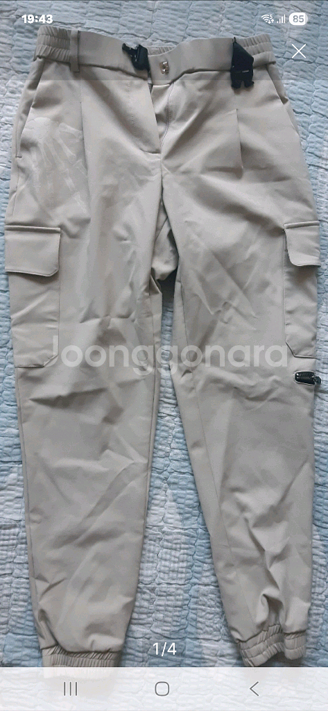 밝은 베이지색입니다. 상태 최상. 퀄리티 아주 좋은 옷입니다. 허리반품32 총장86. 허리밴딩이라 편하게 입으실수 있어요