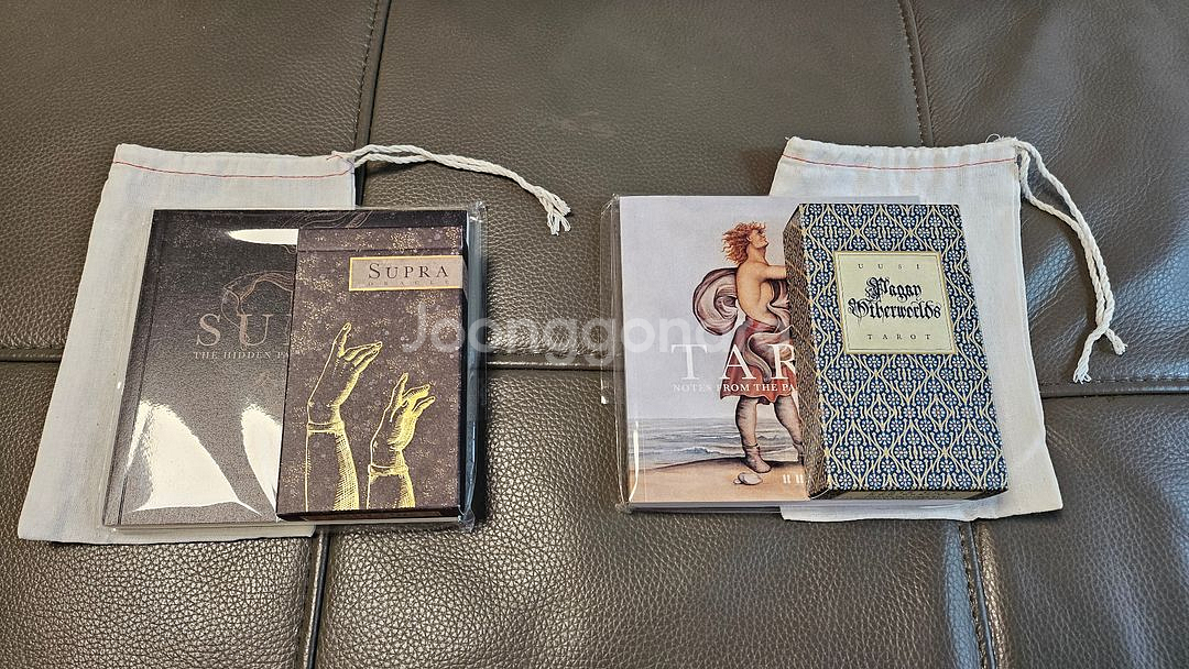 카드는 각각 해설서와 일괄 판매합니다. 페이건 아더월드+해설서/수프라오라클+해설서 이렇게요. 페이건+해설서 120000 수프라+해설서 110000 한정판 루나 덱 19000 판매완료 미국 Uusi 공홈에서 2026.03.03에 주문해 3.6 배송받은 새상품입니다. 공홈 가격 페이건+해설서 $83, 수프라 $78, 한정판 루나 덱은 $12입니다. 페이건 아더월드는 8th Edition, 수프라 오라클은 4th Edition입니다. 비닐 포장을 개봉했으나, 개별 덱 상태 확인 이외의 셔플 등 카드 이용은 하지 않았습니다. 수프라 덱 중 한 장 상단 코팅 위에 미세한 인쇄상 연회색 얼룩이 있습니다. 코팅은 그대로이며 이용에 지장은 없습니다. 사진 첨부합니다. 루나 덱은 페이건 아더월드 덱에서 달 카드 5장만 한정판 세트로 판매하는 상품입니다.