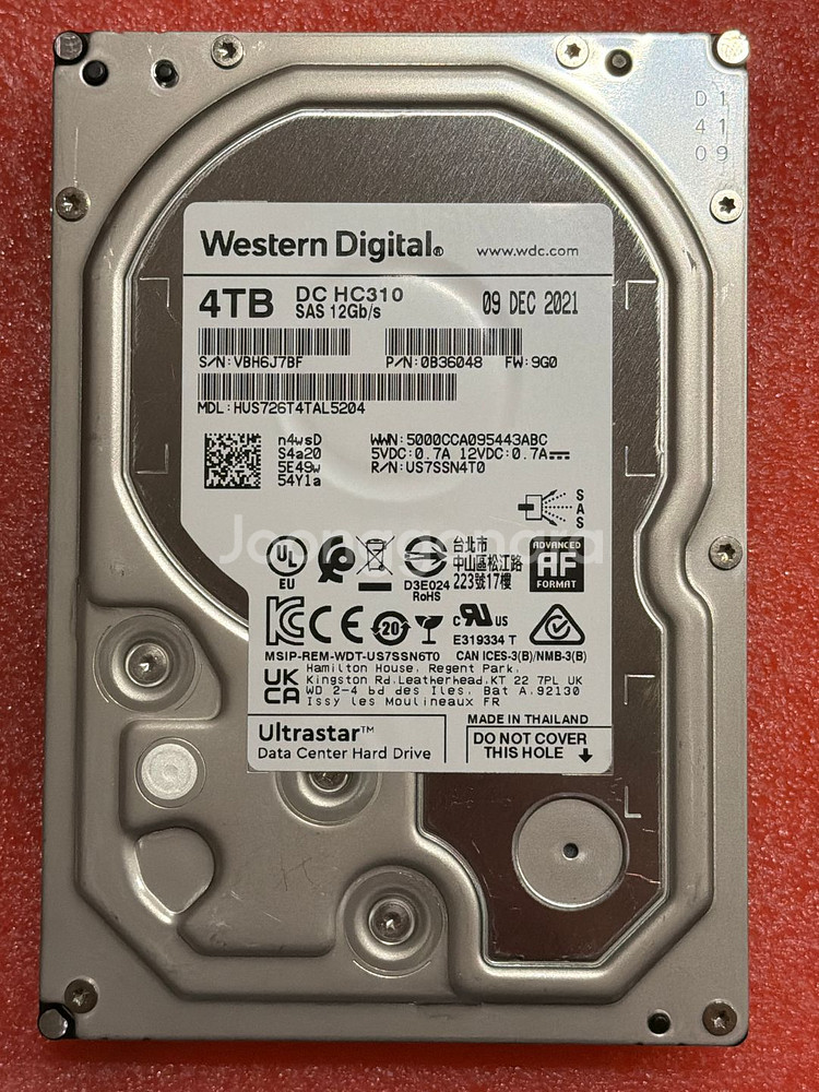 WD HC310 4TB SAS HDD 12G HDD 하드디스크 나스 NAS Western Digital DC HC310 4TB SAS 12Gb/s MDL : HUS726T4AL5204 용도 : Data Centers, Servers, NAS, Cloud Storage 재고 30 --> 20 남음 HP Z840, Z820에 데이타 저장용으로 추천드립니다. Z840, Z820에서는 특별한 옵션없이 SAS HDD 사용가능합니다. 단지 6G로 장착되지만, SATA 보다 훨씬 안정적이고, 내구성이 높습니다. Dell Workstation에서도 H310 SAS Controller가 장착되어 있다면 SAS HDD 사용가능합니다. SATA보다 훨씬 안정적이고 내구성도 훨씬 더 높습니다. 일반 PC에서는 사용불가합니다. SAS Controller를 내장하고 있어야 HDD 인식이 가능합니다. SAS에 대해서 잘모르시면 구매를 자세하시기 바랍니다. 비호환 사유로 반품을 받지는 않습니다. ********* 주의 사항 ************ -- 일반 PC에서 인식불가입니다. -- 저가형 NAS에서 인식 불가입니다. -- CCTV 녹화기에서 인식 불가입니다. *********************************** 워런티 : 2027년 4월 7일까지 워런티 보증 교체 : 씨제이에스 용산구 이촌로105 이촌빌딩 1층 TEL. 070-4365-4064 The Western Digital Ultrastar DC HC310 4TB HDD is a 7200 RPM, 3.5-inch enterprise drive for data centers, featuring 256MB cache, SATA 6Gb/s or SAS interfaces, CMR recording, and high reliability with 2M hours MTBF, designed for heavy workloads with 550TB/yr rating, supporting 4Kn/512e/512n formats, and often includes hardware encryption. Key Specifications: Capacity: 4TB Form Factor: 3.5-inch Rotational Speed: 7200 RPM Interface: SATA 6Gb/s or 12Gb/s SAS Cache: 256MB Recording Technology: Conventional Magnetic Recording (CMR) Data Transfer Rate: Up to 255 MB/s (512e/4Kn models) Workload Rating: 550 TB/year MTBF (Mean Time Between Failures): 2 Million Hours Warranty: 5 Years Features: Vibration Protection (RAFF/RV Sensor), Advanced Format (4Kn/512e/512n), Hardware Encryption (Optional) Power (Operating/Idle): ~7W / ~5.9W Intended Use: Data Centers, Servers, NAS, Cloud Storage Big Data Analytics (e.g., Hadoop) Distributed File Systems, RAID Arrays