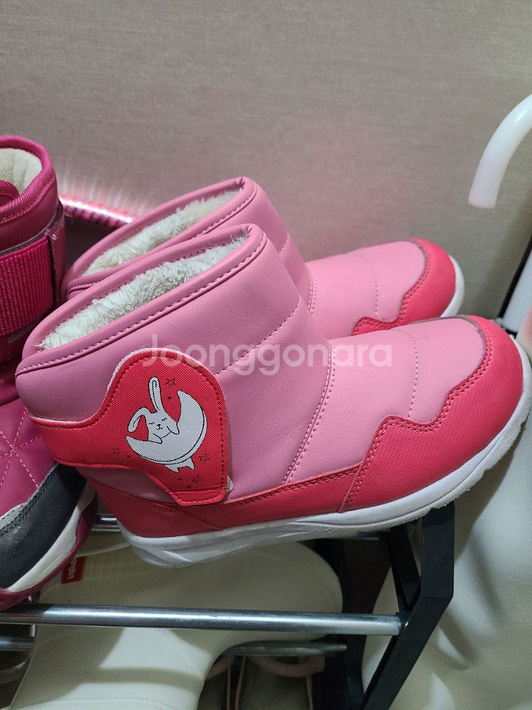 사이즈는 210이라고 써있지만 절대 210사이즈로 신을수 있는 신발이 아니예요ㅠ 180~190정도 아이가 신어도 될것 같아요 발 안에 털도 굉장히 빽빽+촘촘하고, 발목부분도 털이 빽빽하면서 좁아서 발사이즈 실제로는 발사이즈 190정도 아이가 신어야 할 것 같아요~ 방수되는 재질인것 같으니, 눈올때 신어도 좋을듯합니다~ 쨍하니 예쁜 핑크, 유치원생 아이에게 추천합니다! 사이즈 미스로 10회정도? 많이 못신고 아이가 불편하다하여 내년에는 못신길것 같아서 그냥 내놓습니다! 🚫 환불 노우!! 🚫 반품 노우!! 🆗 쿨거래 오케이!! 🆗 반값택배 오케이!! (택배비는 구매자님 부담)
