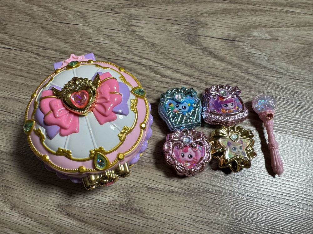 티니핑 슈가베리팩트 건전지 새걸로 바꿔넣었습니다😀 4개의 참과 봉 다 있습니다😀 참에 붙어있는 줄과 딸기고리는 없습니다! 상태 양호하고 작동 잘 됩니다❤️