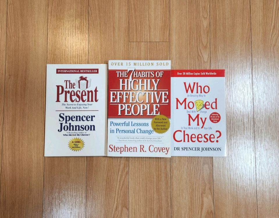 1. Spencer Johnson - The Present 스펜서 존슨 - 선물 2. Stephen R. Covey - The 7 Habits of Highly Effective People 스티븐 코비 - 성공하는 사람들의 7가지 습관 3. Spencer Johnson - Who Moved My Cheese? 스펜서 존슨 - 누가 내 치즈를 옮겼을까? 모두 전세계적으로 유명한 베스트셀러들이고 보관만 하던 새책들이에요. 사진 뒤로 넘기시면 정가 및 책 소개 페이지 있어요. 서울 강남에서 직거래 가능 일반택배거래시 택배비 별도 책 손상 없도록 포장 꼼꼼하게 해드려요 서울/경기 4500원 타지역 5000원 CU편의점 반값택배 거래시 택배비 3000원 별도 중고거래 특성상 반품 환불 불가해요