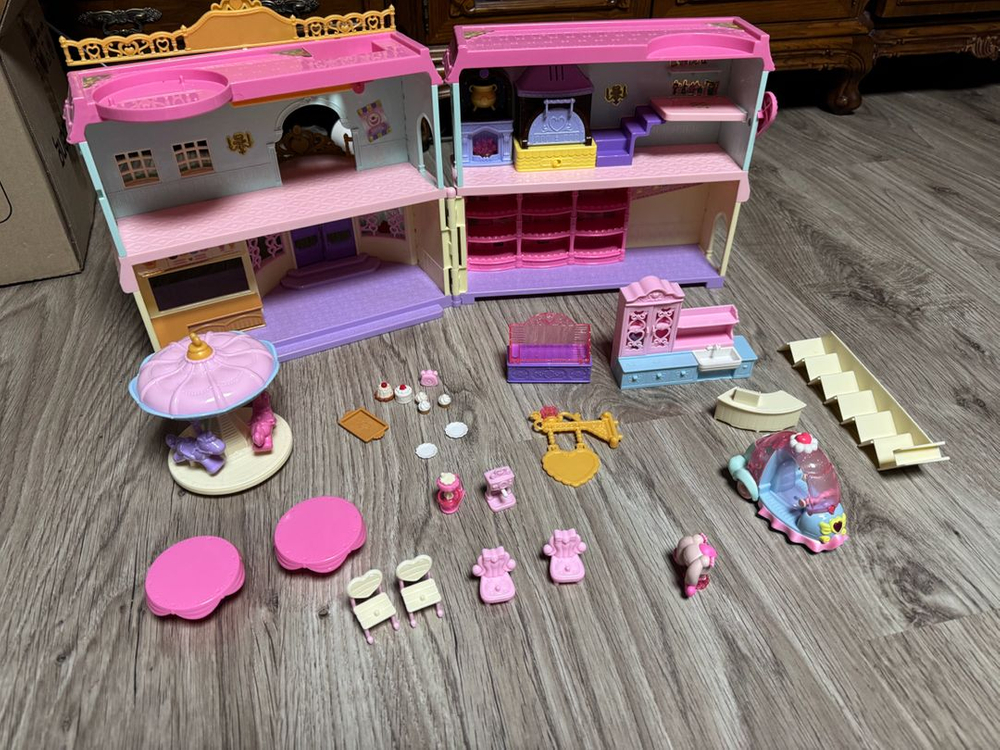 티니핑 빌리지디저트샵 구성은 사진에 확인부탁드립니다😀 반절 이상 있습니다 요즘 단종되어서 가격이 많이 올라가서 구하기 힘든 제품이에요 위에 노란색 울타리는 가운데와 끝부분이 빠져있고 디저트샵 뒷부분에 스티커 흔적 있습니다 노래랑 불 다 잘 나오는데 오븐에 넣었을 때 디저트 색이 변하지 않습니다. 검색해보니 디저트 위에 뿌려있던 변색 물질이 시간이 지나면서 벗겨져서 그렇다고 합니다. 감안해서 저렴하게 올렸습니다