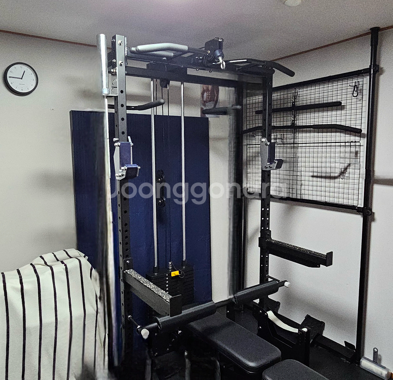 집에서 전신운동 가능한 홈짐 세트예요. 케이블 머신과 각종 운동 기구가 포함되어 있고, 상태도 깔끔한 편입니다. 홈트레이닝 하시는 분께 추천드려요!