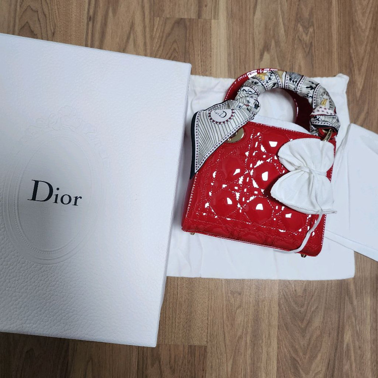 * 상품명 : 디올 레이디백 미니(체리레드) + 디올 정품 미차 스카프 * 품번 : M0505OWCB_M323 * 구성품 : 디올가방, 디올상자, 디올미차, 개런티카드. (인보이스는 분실 하였습니다.개런티카드로 AS가능) * 사이즈 : 가로 17cm 세로 15cm 너비 7cm * 컨디션 : 구매 후 보관만 한 새상품으로 하자 없음 * 2016년 7월 24일 압구정 현대백화점 구매 (현 매장가 750만원) * 디올 미니중 가장 인기 있는 체리 레드컬러의 미니 백 입니다. 구매 후 보관만 한 새상품으로 스크래치방지를 위해 맞춤 로고 보호필름도 부착 해 놓았고 35만원 상당의 디올 미차 스카프도 따로 구입 해 감아 놓았습니다. * 직거래는 서울지역에서 가능하며 노쇼등 거래불발시 돌려드리지 않는 펑 방지금 3만원이 있습니다. 택배거래시 택배비는 제가 부담하여 보내드립니다. * 좋은 가격으로 드리는 상품으로 더 이상의 네고는 불가합니다. * 개인 간 거래로 거래 후 환불 반품 불가 문의사항은 챗 주세요.