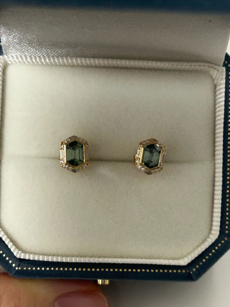 앙즈케미스트리 헥사곤 틸 사파이어 귀걸이 18k 옐로골드/ 천연 사파이어,천연 화이트 다이아몬드 한 번 착용했어요. 새 제품이나 마찬가지예요. 보증서,패키지 다 같이 보내 드려요. 배송비 포함 675000원(에눌불가) 안심결제는 이용하지 않습니다. (택배로 보내드려요/중량거래 안해요/제품 특성상 반품불가)