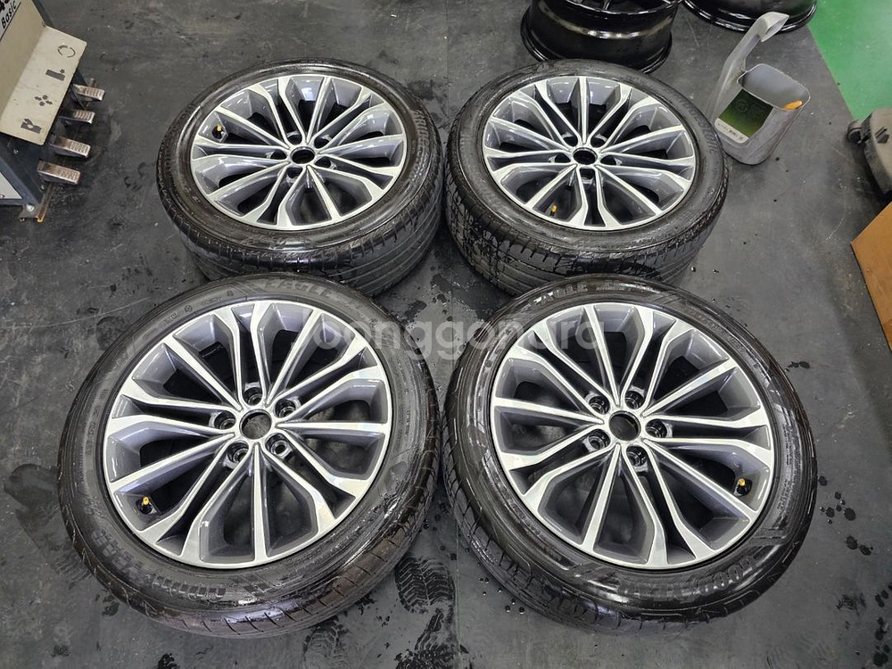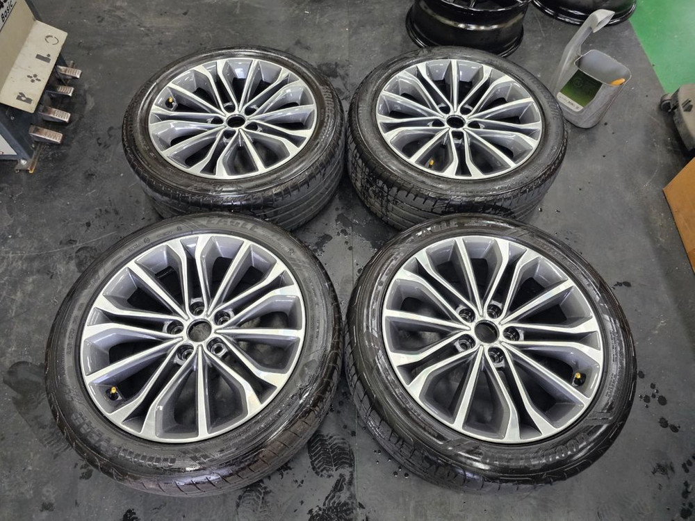 #제네시스DH 18인치 순정 휠타이어 세트 팝니다.245 45 18 휠상태 : 크랙,굴절,기스 전혀없고 깨끗합니다 바란스 이상없습니다.(사진참조) *타이어 : 사이즈는 245 45 18 입니다. 굿이어2본,브릿지스톤2본으로 트레드는 80%정도입니다.(사진참조) 개인차이가 있음으로 타이어 바닥면 확인하세요 *위 치 : 화성시 팔탄면 푸른들판로 747 매장 오시면(장착,바란스,공기압) 무상 서비스로 해드립니다. * 대품반납조건가격 : 현금가 65만원 입니다. (대품상태 따지지 않으며 없을시 연락주세요) * 문의 : 0 1 0 - 8 8 8 8 - 4 9 9 6 (부담없이 전화,문자 주세요.)