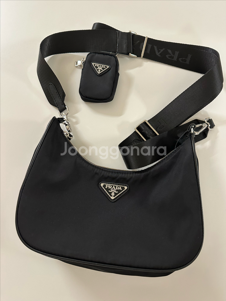 프라다 호보백입니다 - 색상 : 블랙 - 소재 : 나일론 - 크로스백으로 사용 가능합니다 - 탈부착 가능한 파우치 포함입니다 가볍고 수납이 용이하여 데일리백으로 좋습니다 25.1월 베트남에서 구입 전체적으로 깨끗한 편이나 실오라기 있는부분은 상태확인바람(사용에는 전혀 문제없음)
