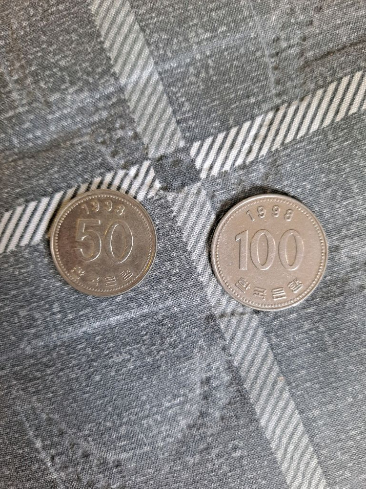1998년 발행된 50원과 100원 동전 2개입니다. 필요하신분 연락주세요