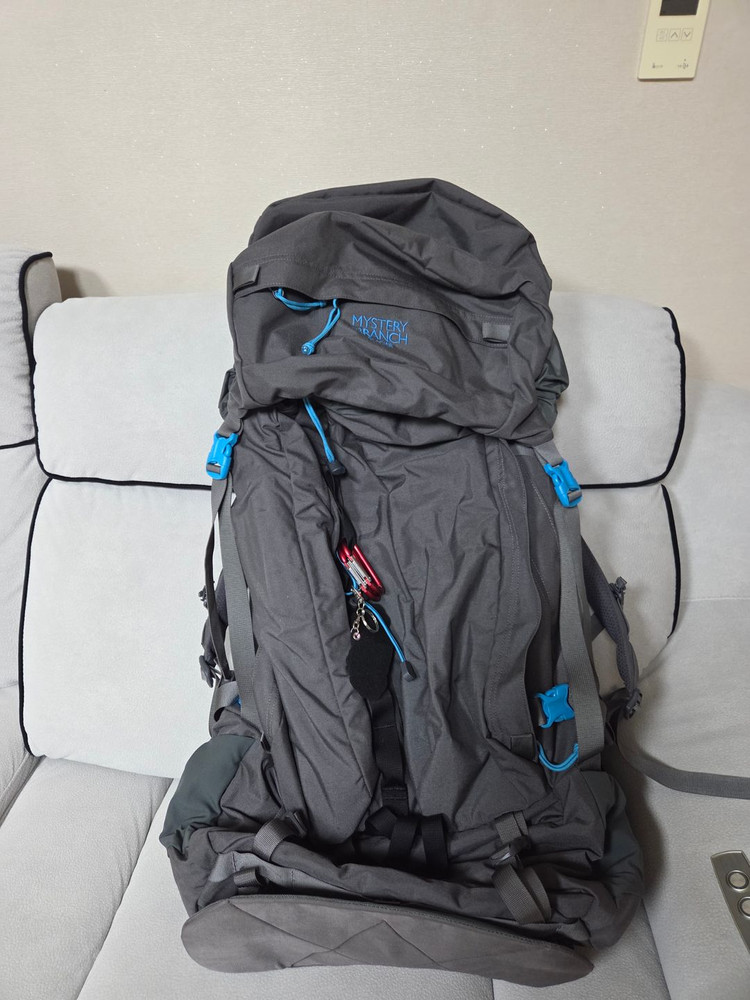 45리터 등산용 백팩이에요. , 블루 포인트 컬러가 예쁘네요. 등산이나 트레킹용으로 딱 좋은 사이즈입니다. 구매후 5회정도 착용했습니다. 예민하지 않게 사용하였습니다. 바닥보호깔판도 드립니다. 구매당시 39만에 구매하였습니다.