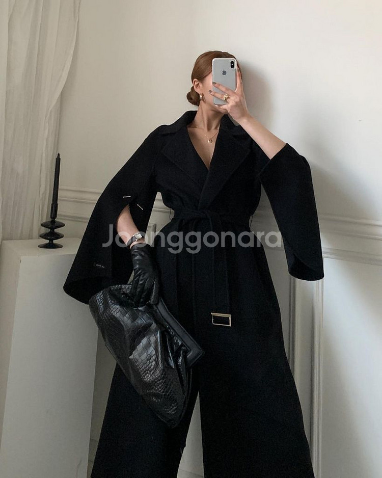 블랙 프리사이즈 새상품 기장 115cm 여밈 없는 로브 스타일입니다. 원래 있던 벨트는 별도로 보관한 것 같은데 못찾아서 비슷한 허리끈으로 드려요. 코트랑 같이 하려고 구매한 지블링 머플러도 같이 드려요. 디자인이 독특해서 구매했는데 입을 일이 없어서 처분합니다. 소매에 핸드메이드 택은 제거했어요. 반품, 환불 불가
