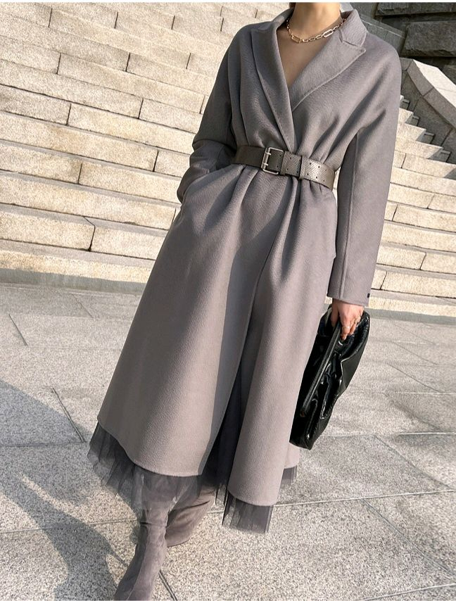 프리사이즈 그레이 기장 120cm 시착만 해봤어요. 소매 핸드메이드 택은 뗐어요. 벨트는 제원단 벨트, 소가죽 벨트 2개 입니다. 반품, 환불 불가