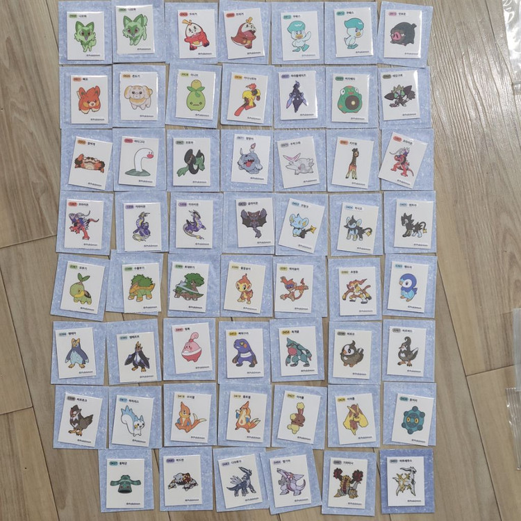 포켓몬 4.9세대 낱장은 제가 가지고 있는 중복씰에서 대부분 장당 천원씩 일부 금액 달라서 따로 문의주시면됩니다^^ 낱장은 5장이상부터 판매합니다..여러장 구매하시면 에눌 해드려요. 미개봉세트 8만원입니다. 개봉세트 6만원입니다. 씰상태 최상이니 믿고 구매하셔도 됩니다♡ 개봉씰 전부 opp필름에 끼워서 보관중입니다~ 지킬수 있는 매너는 지켜주세요 . 배송은 원하는걸로 해드리지만 배송비 별도입니다.