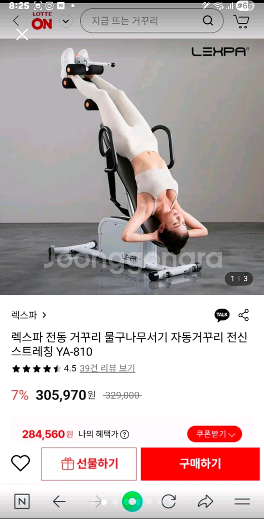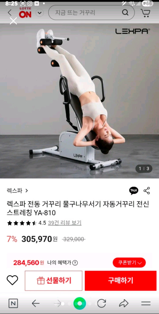 거의 새 것. 사용감 (거의)없음 실사용 3회 이하 애들 척추와 자세 교정을 위해 구입했는데 안쓰네요. 7월 20일 경 롯데몰에서 구입했습니다. 고심해서 구입했는데 아깝지만 새 것 같은 제품 반 값에 내놓습니다. 다리 부분 분리되므로 승용차에 들어갈 듯 합니다. (하단 길이 120센치 미터) 어르신들 요통에도 좋습니다. 구삼오하나 팔사구팔