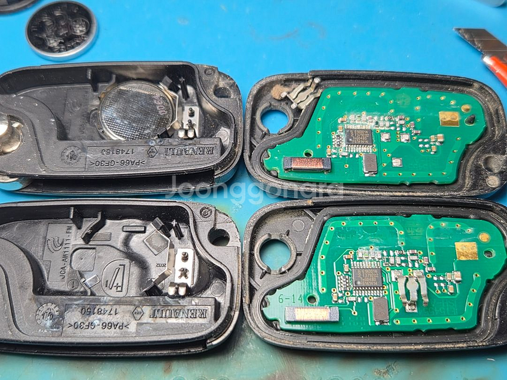 르노 SM3 2011년식 차량 스마트키 2개가 세탁기에 들어가 세탁 후 방치되어 작동이 되지 않는 상황으로 수리 요청을 받았습니다. 세탁기 침수로 인해 스마트키 내부 기판에 수분과 세제 잔여물이 남아 무반응 상태였지만 분해 후 세척 및 기판 점검 작업을 통해 정상 작동하도록 복구했습니다. 🛠️ ✔ 세탁기 침수 스마트키 수리 ✔ 스마트키 무반응 복구 ✔ 리모컨 버튼 작동 점검 ✔ 내부 기판 세척 및 수리 최종적으로 리모컨 잠금 / 열림 기능 정상 작동 확인 후 작업 완료했습니다.