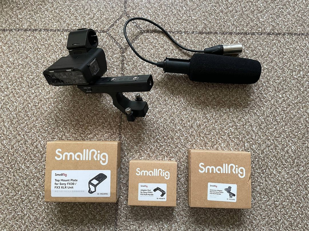 소니 FX3 / FX30 / FX2 용 오디오핸들 및 마이크, 그리고 악세사리 세트입니다. 1.XLR-H1 : 오디오 핸들 2.ECM-MX1 : 마이크 3.A7시리즈에 장착할수 있게 해주는 어답터 4.오디오 핸들 탑 플레이트 5.탑플레이트와 나토레이 세트 합본 핸들은 민트급이고 스킨을 부착했습니다. 일괄로 판매합니다.