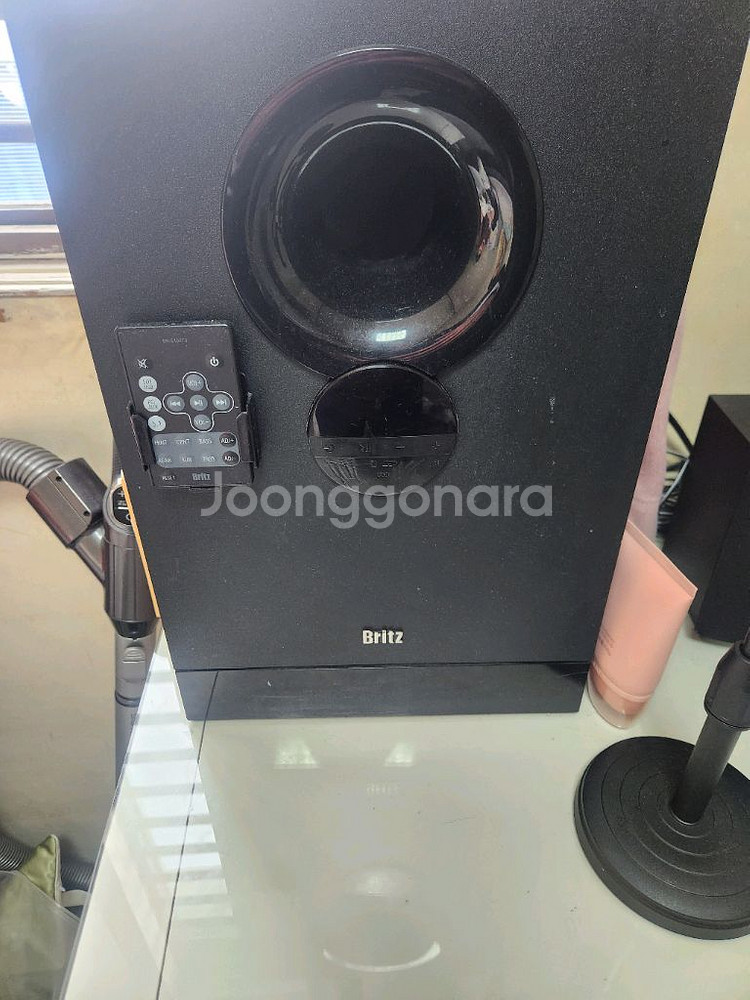 북쉘프 스피커와 서브우퍼가 함께 구성된 홈시어터 세트예요. 사용감은 있지만 정상 작동하며, 케이블도 모두 포함되어 있어요. 깔끔한 블랙 디자인으로 어떤 인테리어에도 잘 어울려요.