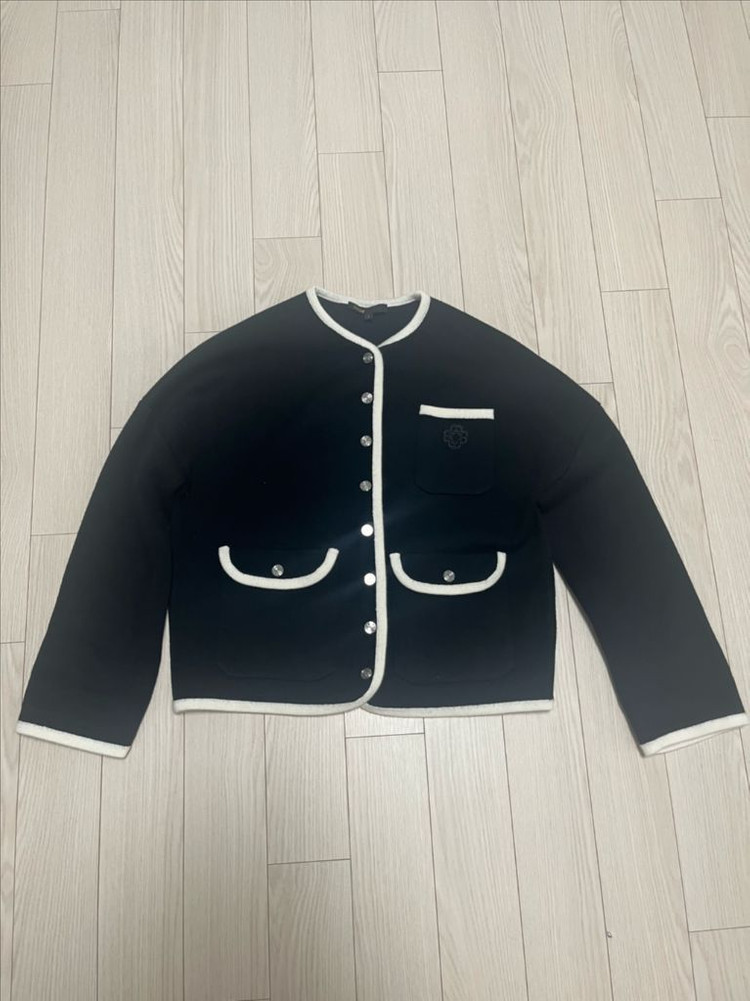 Maje 마쥬 브랜드의 블랙 가디건입니다. 지금은 단종된 소장가치 있는 가디건이에요. 아이보리색 트리밍이 포인트로 들어가 있습니다 사이즈는 2입니다. 마쥬 시그니처 자수와 단추 문양이 포인트고 사이즈 넉넉해 저는 자켓 형식으로도 입었습니다. 문의주세요.