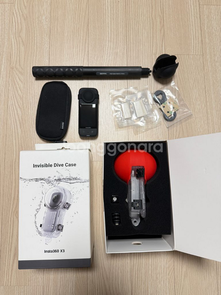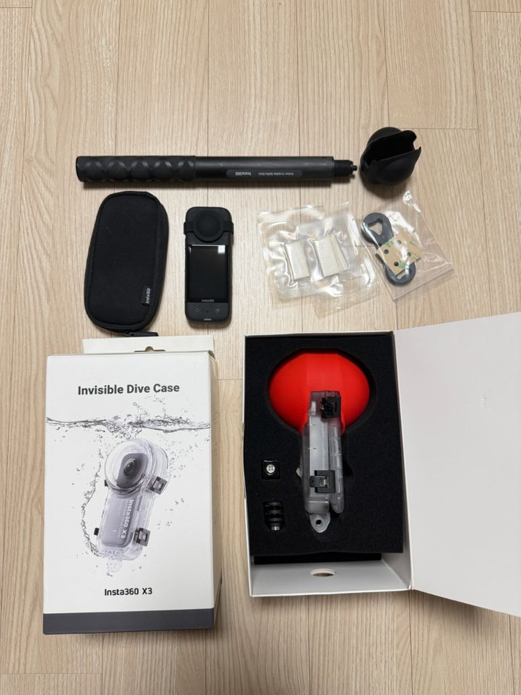360도 액션카메라와 다이빙케이스, 인비져블스틱 구성품이 모두 포함된 세트예요. *****개인적으로 연락처 알려 달라거나 문자로 얘기하자는 분은 사기로 생각하고 답장 하지 않겠습니다***** 배터리 1개 본체 1개 본체 파우치 1개 본체 헤드커버 1개 다이브케이스 1개 인비져블 스틱 1개 SD 카드 X 3년정도 됐고 10회미만 사용했습니다 본체 렌즈 기스 없습니다 다이브케이스 실사용 기스 있으나, 영상에는 티가 전혀 나지 않습니다 네고 불가능하고, 직거래만 합니다 생각있으신분만 연락 주세요