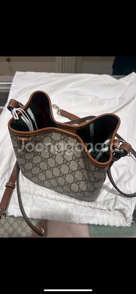구찌 GC 엠블럼 스몰 버킷백 입니다 GG 엠블럼 스몰 버킷백 / 815118 FAD6L 9758 -풀박스 구성입니다 -캔버스 소재로 제작되어 가볍고 내구성이 좋습니다 -브라운 색상에 내부 스트라이프 패턴이 포인트입니다 -클래식한 디자인으로 어떤 스타일에도 잘 어울립니다 12월18일에 광주신세계백화점에서 260만원 구매 구매후 5회미만 착용