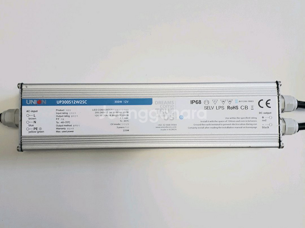 개인정보(거래정보)를 주고받는 행위는 사기에 노출될 수 있으므로 즉시 중고나라로 신고해 주세요■유니온 방수형 LED컨버터, SMPS, 안정기 - 300W - 12V *2개 있으며, 각 판매합니다.