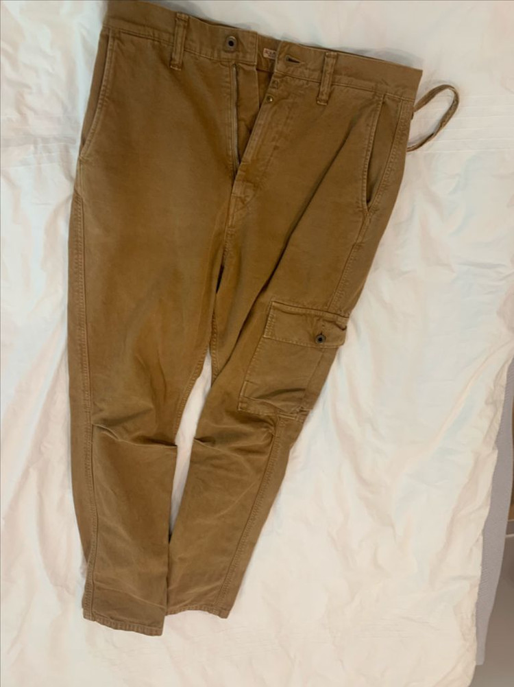 캐피탈 링고맨 카고 바지입니다. 2사이즈 이고 이색상은 귀한 매물입니다. 사용감 있지만 상태 좋습니다. 카고 포켓 디테일이 매력적인 제품입니다. 색감도 예쁘게 잘 빠져서 어떤 옷에도 잘 어울립니다.