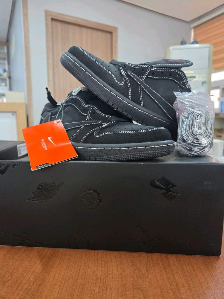 - 상품명 : 조던 1 x 트래비스 스캇 레트로 로우 OG SP 블랙 팬텀 - 사이즈 : 240 - 구매처 : 크림 - 구매시기 :26년 1월 20일 - 상태 : 미시착 새상품 * 구성품 반다나제외 전부있습니다! 크림에서 구매하였고 반다나없는상태여서 94만원에 구매했습니다 박스손상 조금있습니다 추가사진요청 가능합니다 문의주세요