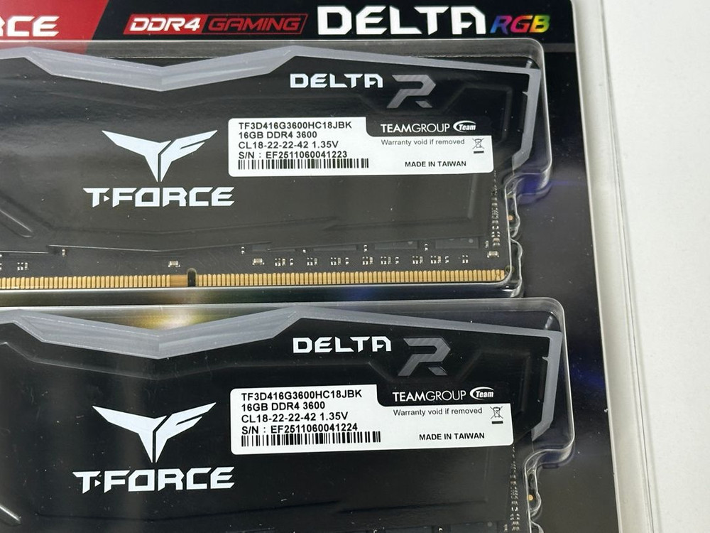 [서린공식] 팀그룹 T-Force DDR4-3600 CL18 Delta RGB 블랙 패키지 32GB(16Gx2) 미개봉상태이고 신품가격 40만원대입니다. 서린은 스티커 있으면 lifetime warranty 적용되기때문에 신품구매하실분들은 이것 구매하셔도 똑같이 워런티 적용받습니다. 네고X