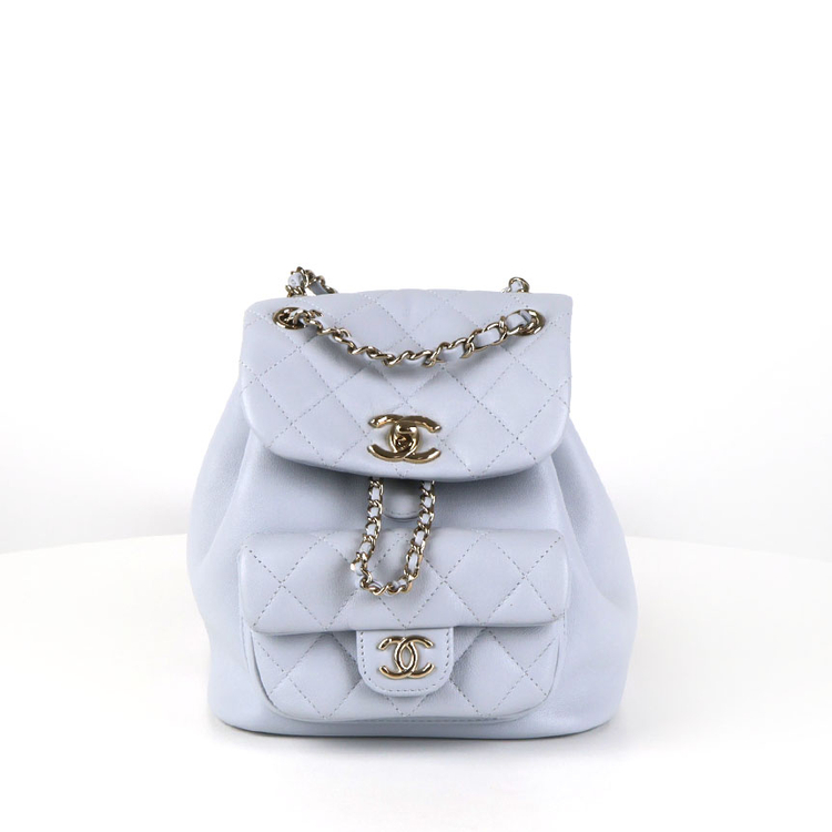 - [중고명품다올] 샤넬 듀마 더블 원포켓 백팩 스몰 카프스킨 블루 그레이 AS2908 상태 □ N □ S ■ A+ □ A □ B+ □ B 디테일정보 ■ 0-2회 □ 2-5회 □ 5-10회 □ 10-20회 □ 20회이상 사이즈 18 x 21 x 12 cm *재는 위치, 각도에 따라 약 1-2cm 오차 범위가 있을 수 있습니다. 구성품 본품, 구매내역서, 본품케이스, 업체보증서 이번에 소개해드릴 제품은 샤넬 듀마 더블 원포켓 백팩 스몰 카프스킨 블루 그레이 AS2908 입니다. 부드러운 카프스킨 소재에 블루 그레이 컬러가 더해져 고급스럽고 차분한 분위기가 돋보이는 아이템입니다. 듀마 라인 특유의 여성스러운 실루엣과 전면 더블 포켓 디테일로 샤넬의 클래식한 감성이 잘 살아 있습니다. 스몰 사이즈 백팩으로 데일리 소지품 수납에 적합하며, 캐주얼하면서도 세련된 스타일 연출이 가능합니다. 24년 국내 구매한 전체적인 컨디션 좋은 제품입니다. -