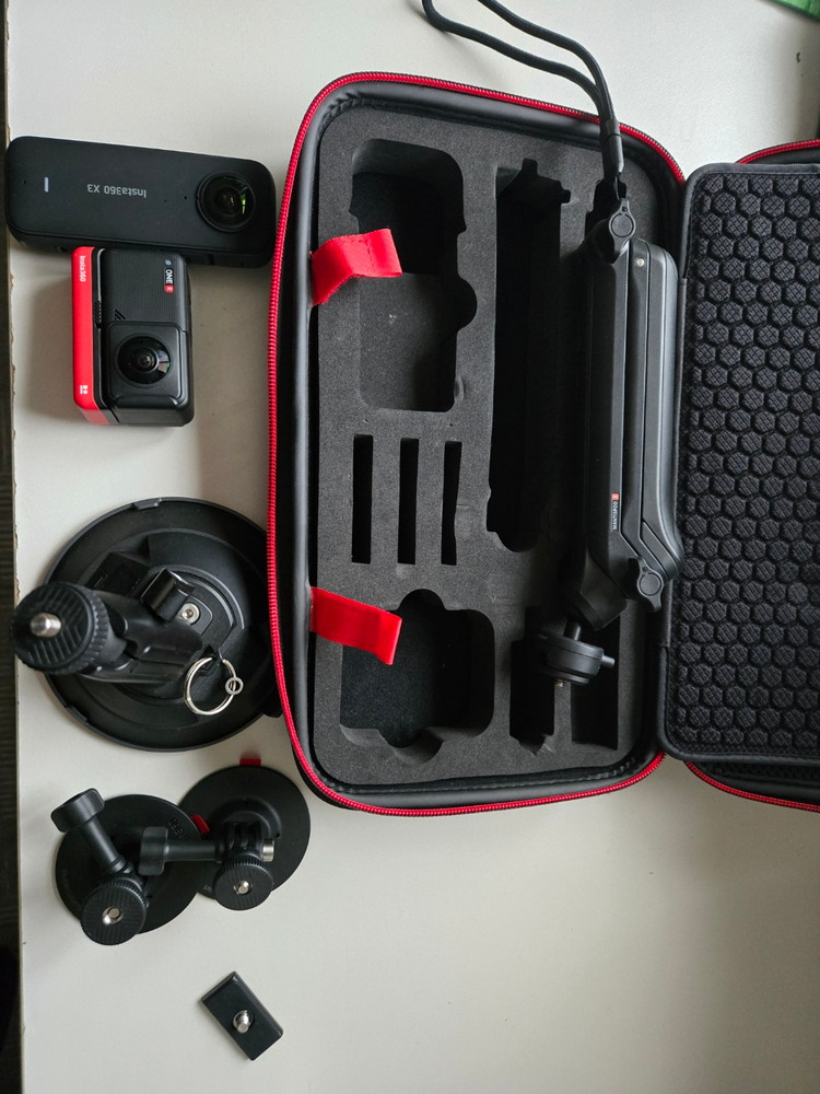 일괄판매합니다 인비져블 스틱 1개와 일반 셀카봉있구요 접착마운트 2개있습니다. one r 에는 sd카드는 없습니다. 전동식 석션컵은 일주일도 사용 안했구요, 차량 속도 100km이상에서도 문제없이 잘 붙어있습니다. 택포가격, 네고문의사절