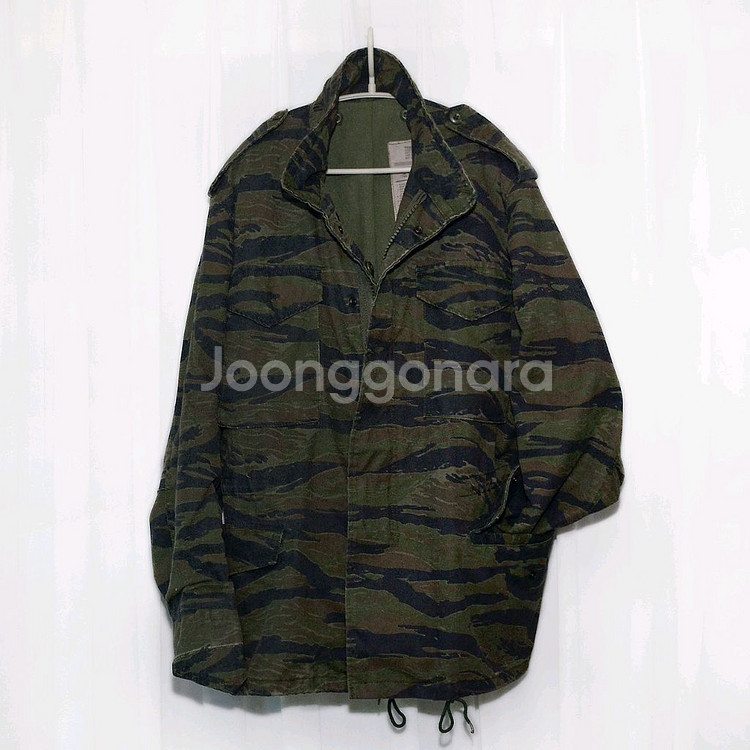 알파 인더스트리 (ALPHA INDUSTRIES) USA 오리지널 타이거 카모 M-65 필드자켓 당연히 정품 미군 대표 군납 의류 업체로 시작된 근본 밀리터리 스타일 의류 브랜드 알파 인더스트리의 타이거 카모플라쥬 패턴 M-65 야상 필드자켓입니다. 일반적으로 많이 보이는 민무늬나 흔히 개구리라고 불리는 우드랜드 카모패턴이 아닌 6-70 년대 베트남 전쟁 당시 미군 특수부대에게만 소량 지급되었던 흔치않은 타이거 카모플라쥬 패턴으로 유니크하고 멋스럽습니다. 요즘 나오는 패션 아이템으로 원가 절감해 스타일만 남은 중국 라이센스 생산품 아닌 오리지널 메이드인 USA 제품으로 군용 기능성 원단의 상징같은 내구성 뛰어나고 착용감 좋은 폴리65 코튼35 혼용률 립스탑 조직 10-11온스급 트윌코튼 소재와 타협없는 탄탄한 만듬새 훌륭하고 멋스럽습니다. 표기 사이즈 미국 M (나토 사이즈 7080 / 9404) 실측 어깨단면 48-49 가슴단면 58-59 팔길이 60-61 (팔등 덮개부분 제외) 총장 75-76 정도로 겨울철 안에 내피등 같이 껴입을 수 있도록 여유로운 폼으로 나오는 넉넉한 타입의 외피 자켓 형태라 단독 착용 기준으로는 국내사이즈 넉넉 105 정도 보시면 될거 같습니다. 보통 체격 남성분들은 여유로운 루즈핏 오버핏 스타일로 캐쥬얼한 후드티부터 퀼팅 패딩 자켓등 겨울철 방한용 내피등 같이 레이어드해 편하게 입기 좋습니다. 넥라인 뒤쪽 지퍼 안쪽의 히든 타입 후드는 제거되었고 연식에 따른 자연스러운 착용감 멋스러운 페이딩 정도 있으나 다른 아우터 자켓등 많아 돌려가며 입는 편이라 눈에띄는 큰 파손.훼손없이 전체적인 상태 양호합니다. 개인 중고 거래 특성상 교환.환불 불가 직거래 장위동 원천 주유소 인근에서 가능 택배거래시 입금 확인 후 택배 접수하고 송장 사진 보내드립니다. 연락처 ㅇ1ㅇ-3ㅇ23-ㅇ987 모르는 번호 잘 안 받으니 문자 주세요