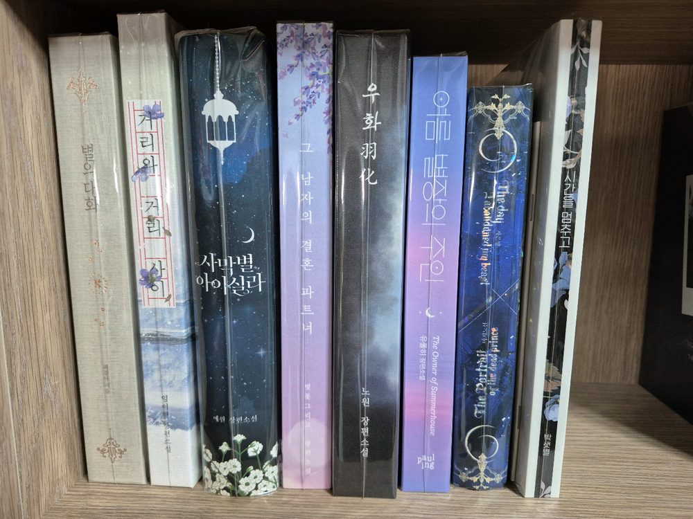 최겸아 - 별의 대화 임이현 - 거리와 거리 사이 예휜 - 사막별 아이실라 벚꽃그리고 - 그남자의 결혼 파트너 노원 - 우화 유폴히 - 여름별장의 주인 자은향 - 짐승을 버리던날/ 마지노선-어린 왕자의 밤 박샛별-시간을 멈추고 전체 다 하시면 일부 깍아드립니다. 배송받고 바로 opp 포장된 상태라 책상태는 처음 배송받은 그대로입니다