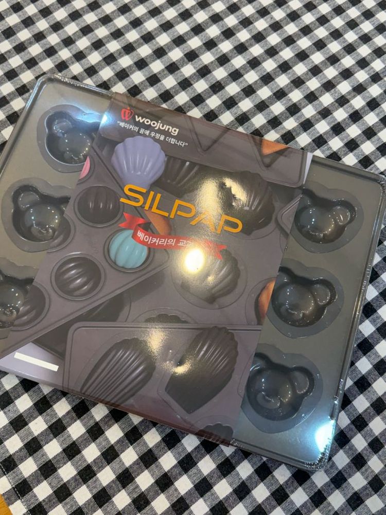 이번에 새로나온 우정에서 만든 실팝코팅 곰돌이 마들렌틀이에요 2판있는데 한판은 포장도 안뜯은 완전새거이고 한판은 1번테스트해본 제품입니다 새제품 40000원 1번사용 35000원 두판다 하시면 70000원에 드려요 택배비별도입니다