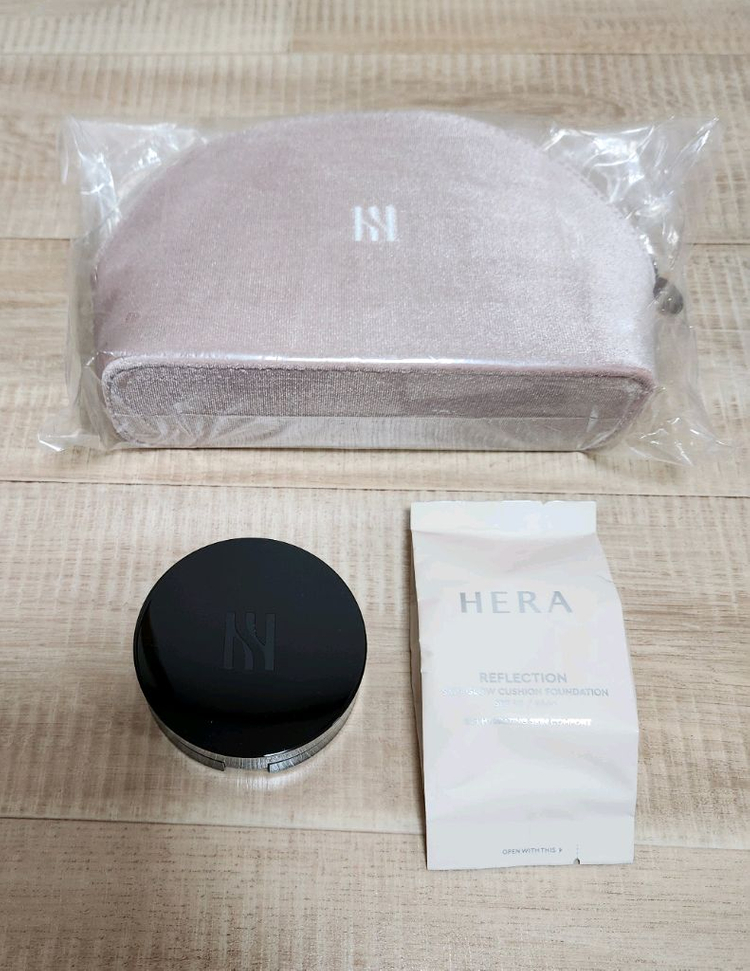 헤라 블랙쿠션 본품 팝니다 미개봉 새제품, 21n1바닐라 색상이고 유통기한 28년 9월입니다 헤라 레플렉션 스킨 글로우 미니쿠션 21호와 헤라 파우치 같이 드립니다