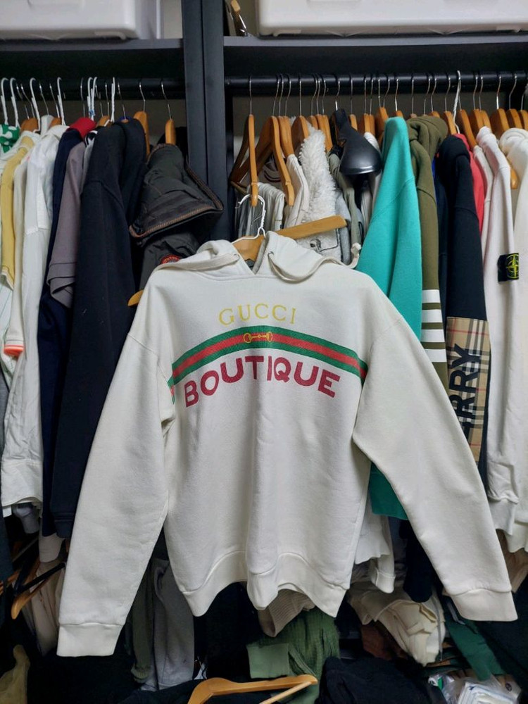 아이보리 색상의 구찌 부티크 로고 후드티입니다. 실측 사이즈는 100으로, 남성분들께 적절한 핏을 제공합니다. 옷장에 보관만 해놓은 거의 새 상품입니다. 문의 없으시면 바로 안전결제해주시면 됩니다! 약간오버핏이라 100정도로 보심됩니다 세탁으로 부티끄부분 살짝 붉게보이는데 입으면 크게 티안납니다 옷안쪽에 보관상 사이즈탭쪽 살짝 묻은게있는데 겉으로는 전혀안보입니다 아주이쁜옷입니다 밝은옷이라 발견못한 얼룩이나 이염이 있을수있습니다 남녀공용입니다 이너로 단독으로 아주이쁩니다 직거래가능 대전입니다