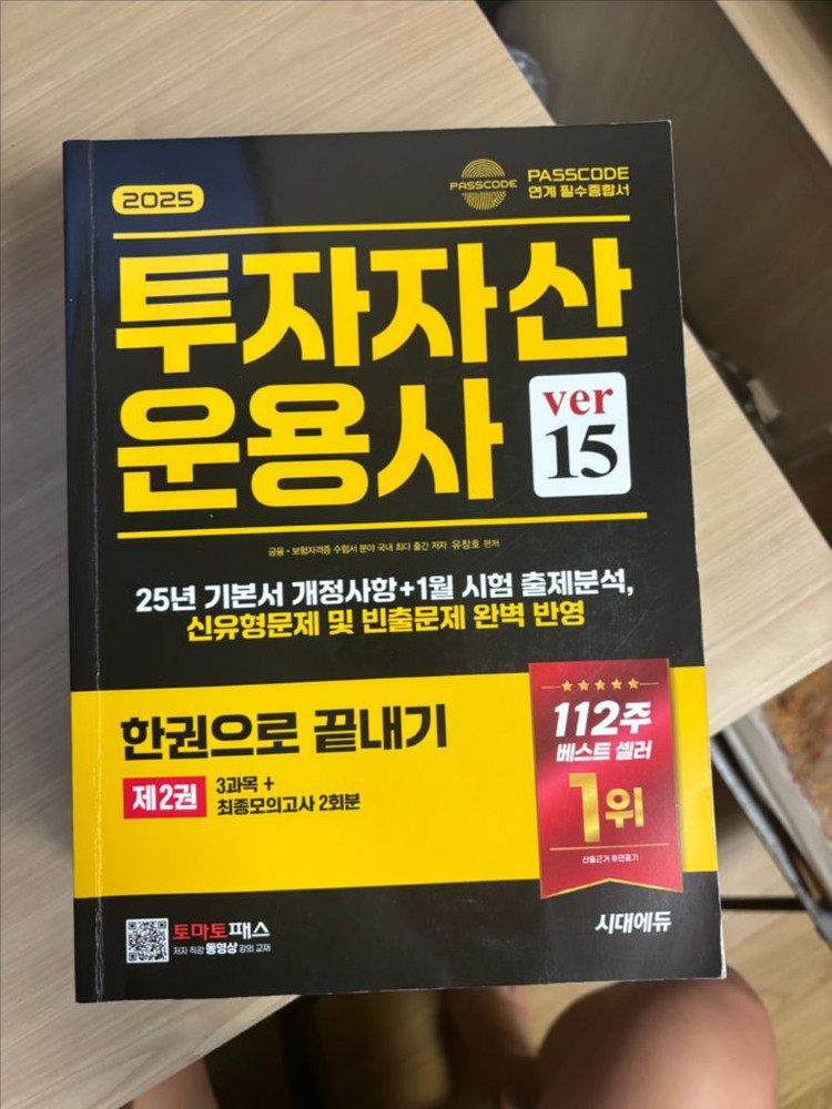 개인정보(거래정보)를 주고받는 행위는 사기에 노출될 수 있으므로 즉시 중고나라로 신고해 주세요2025년 투자자산운용사 시험 대비 한권으로 끝내기 + 패스코드 모의고사 일괄 판매합니다. 5주동안 파서 노베이스 인강없이 합격했습니다. 교재상태는 필기감 많고 모의고사도 다 풀어서 감안해서 저렴하게 판매합니다. 택포 2만원입니다