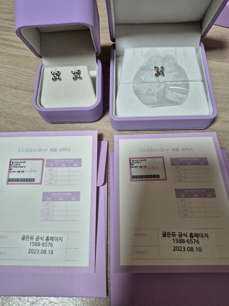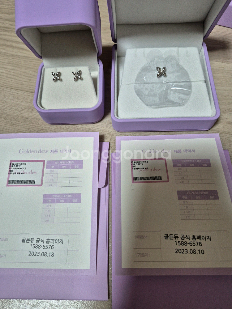 화이트골드 색상입니다 두번정도착용했어요 큰사이즈도같이구입해서 쁘띠는 잘착용안해서판매해요 사용감 거이보이지않으나 예민하신분은 구입안해주셨으면해요 받으신후 구매확정부탁드립니다