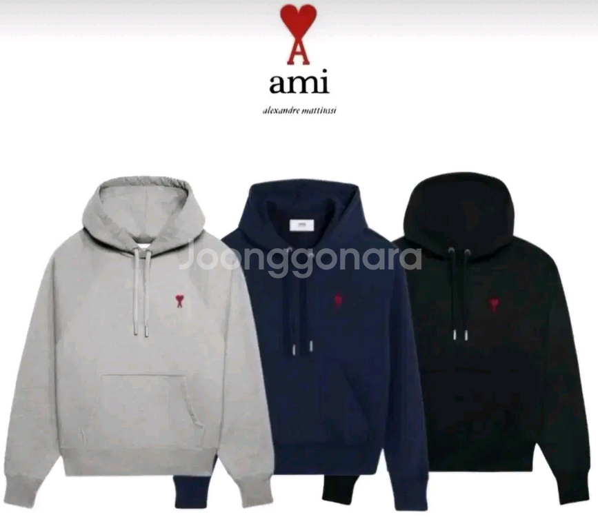 아미 스몰 하트 후드 QR인증 색상 네이비 그레이 블랙 사이즈 S M L