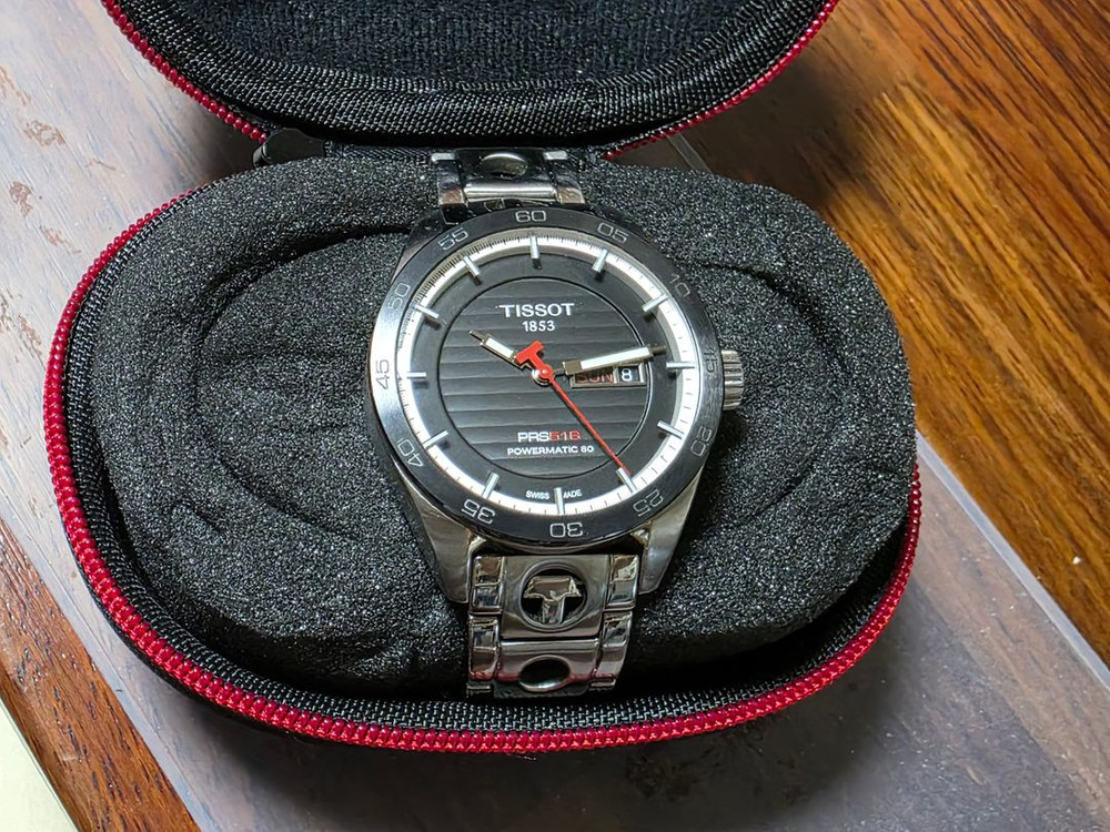 티쏘 PRS516 오토매틱 시계 판매합니다 - 파워매틱 80 무브먼트가 탑재되어 있어 긴 파워 리저브를 자랑합니다 - 100m 방수 기능으로 생활 방수가 가능합니다 - 사파이어 크리스탈 글래스를 사용하여 긁힘에 강합니다 케이스 포함입니다 천안갤러리아백화점에서 구입하였으며 보증서는 3년전 오버홀 의뢰시 백화점에서 분실되었습니다 마지막사진 과거 갤러리아백화점 영수증인데 7년이 지나다고니 탈색되어 희미하게 보이네요 생활기스 일부있고 전면 글라스와 테두리는 기스없이 양호합니다(사진 참조) 가죽밴드에서 메탈밴드로 교체하였고 가죽밴드용 부품 같이 제공합니다