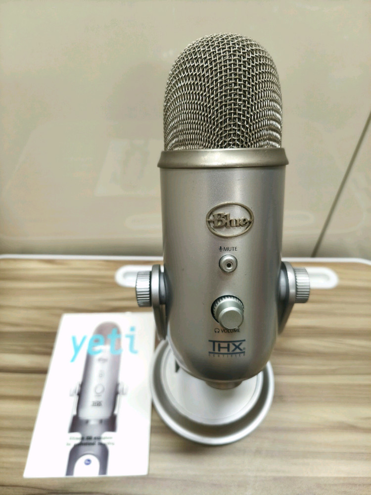 블루 예티 USB 마이크 실버 색상입니다 예티(Yeti) 마이크 처음 출시된 당시의 오리지널 버전으로 연식은 좀 됐지만 성능엔 이상 없습니다. 사진에서 보듯 자잘한 사용감 있습니다. USB 케이블로 PC(노트북)에 연결하시고 PC 오디오 설정에서 마이크 장치와 헤드폰 장치를 예티로 설정하시면 녹음하면서 예티에 연결하는 헤드폰이나 이어폰으로 소리를 모니터링하면서 작업할 수 있어요. - 4가지 패턴 모드(스테레오, 양방향, 무지향성, 단일 지향성)를 지원하여 다양한 환경에서 사용 가능합니다 - 마이크 전면에 음소거 버튼(Mute)이 있어 편리합니다 - 게인 조절 다이얼로 음량 조절이 용이합니다 - 플러그 앤 플레이 방식으로 간편하게 연결하여 사용할 수 있습니다. 마이크 본체 , 종이 카다로그, 케이블 드립니다.