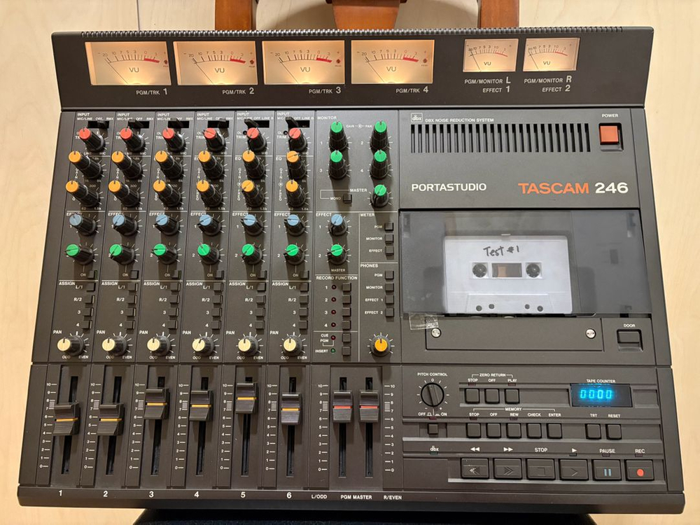Tascam Portastudio 246 Tascam 의 가장 상위 기종의 카세트 테이프 레코더입니다. 388 의 작은 형제라고 부를 정도로 릴데크 만큼 소리와 퀄리티가 좋습니다. 벨트 및 핀치 룰러 모두 교체했습니다. • 2번 채널이 다른 1, 3, 4번 채널보다 아주 약간 레벨이 작게 들어옵니다. Op-Amp 가 나간 것은 아니고 내부의 레코딩 레벨 트리머를 조절해줘야 할 것 같습니다. • 테이프 도어의 텐션암이 나갔습니다. 잠금장치까지 잘 되지만 반사적으로 튀어나오지는 않아서 테이프를 부착해서 열고 닫았습니다. 판매가 : 1,200,000 지방이라서 노리턴 고속화물 / 퀵 거래만 가능합니다 ( + 10,000 ) 소비적인 문자는 차단합니다. 꼭 구매하실 분만 연락 바랍니다.