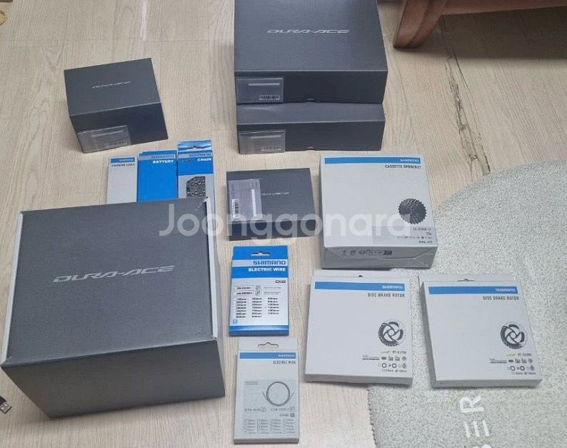 전동변속 시프터와 각종 부품들이 포함된 로드바이크 부품 세트입니다. 박스 상태 양호하고 미사용 새제품 입니다.