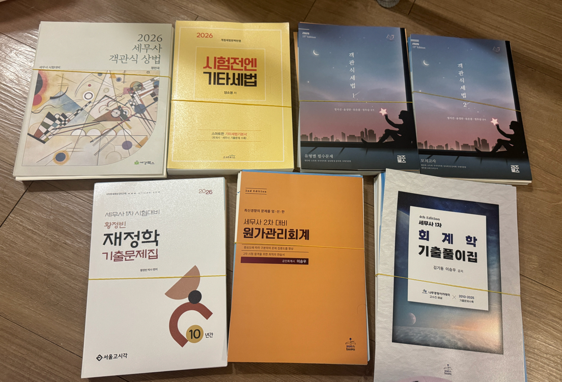 1.상법 제단본 새책입니다. 잘 확인해주세요! 정가: 24,000 10%할인가: 21,600 팔가: 17,600 반값택배 및 직거래 가능 2. 기타세법 제단본 새책입니다. 잘 확인해주세요! 정가: 25,000 10%할인가: 22,500 팔가: 18,500 반값택배 및 직거래 가능 3. 객세 제단본 새책입니다. 잘 확인해주세요! 일괄판매만 가능⭐️ 정가: 53,000 10%할인가: 47,700 팔가: 43,700 반값택배 및 직거래 가능 4. 재정학 제단본 새책입니다. 잘 확인해주세요! 일괄판매만 가능⭐️ 정가: 22,000 10%할인가: 19,800 팔가: 15,800 반값택배 및 직거래 가능 5. 원가관리회계 제단본 새책입니다. 잘 확인해주세요! 정가: 30,000 10%할인가: 27,000 팔가: 23,000 반값택배 및 직거래 가능 6. 회계학 기출 제단본 새책입니다. 잘 확인해주세요! 정가: 26,000 10%할인가: 23,400 팔가: 19,400 반값택배 및 직거래 가능