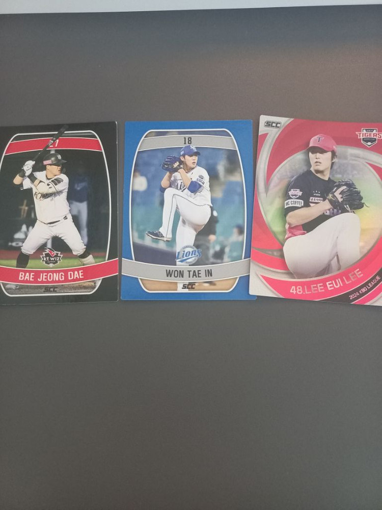 이의리 홀로그램 3000 배정대 1000 원태인 판완 새상품입니다. 사진 확인 후에 채팅 주세요. 택배비는 cu끼리택배나 반값택배는 2500별도, 일반택배는 4500별도입니다. 구매 후 환불은 불가하니 신중하게 구매 부탁드립니다.