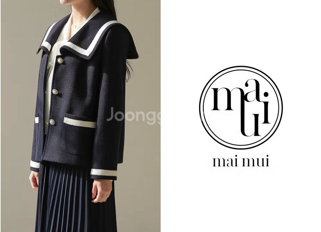 마이무이 부클 트위드 자켓 마이무이 트위드 자켓 세일러 카라, 배색 디자인 실버버튼 포인트 플러스 원사이즈 제품 (66~이상사이즈) 입니다. 가슴 약 59 길이 약 55